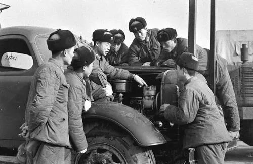 這是雷鋒(左三)向戰友傳授安全行車和節油的經驗(資料照片)。新華社發
