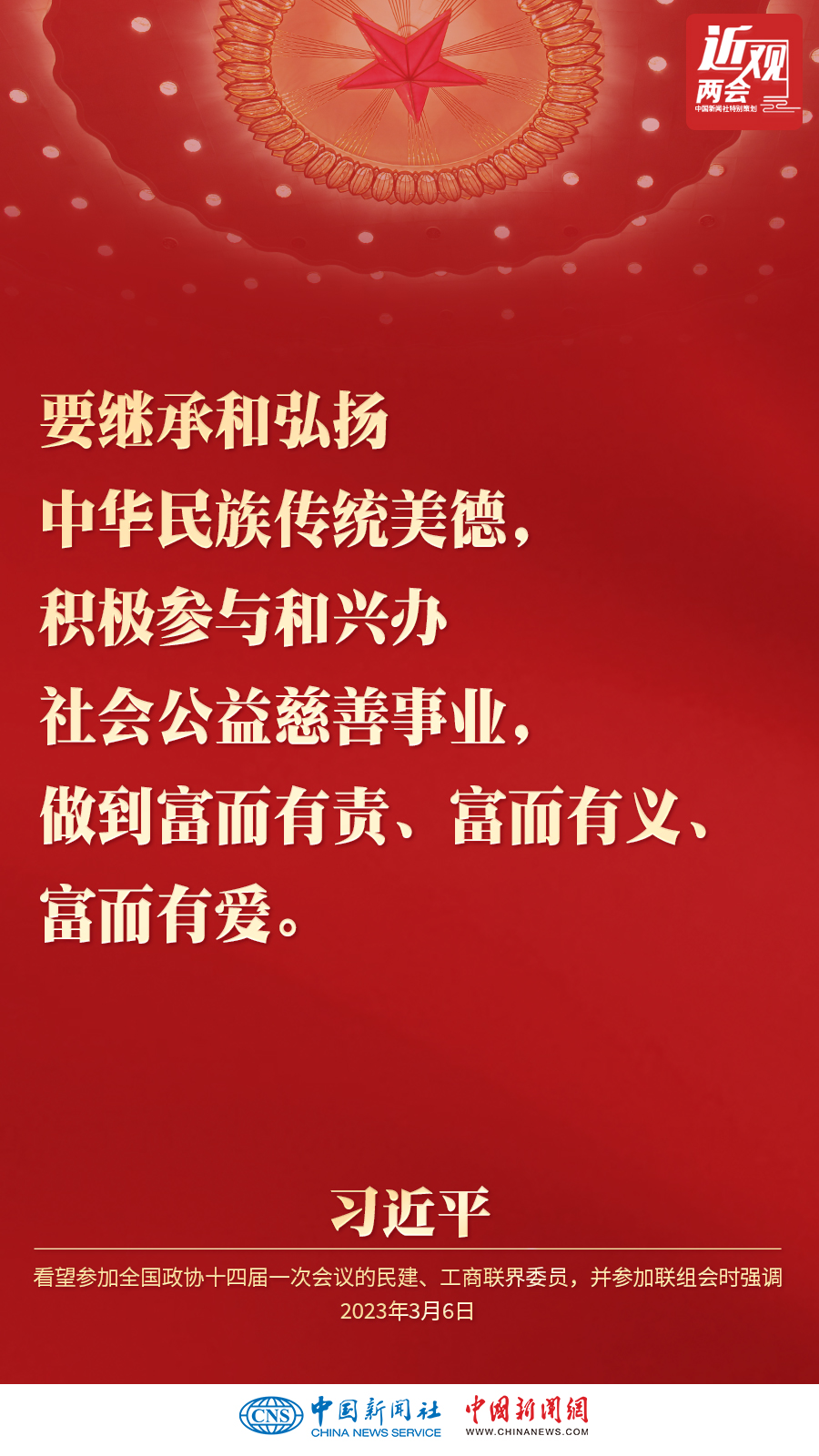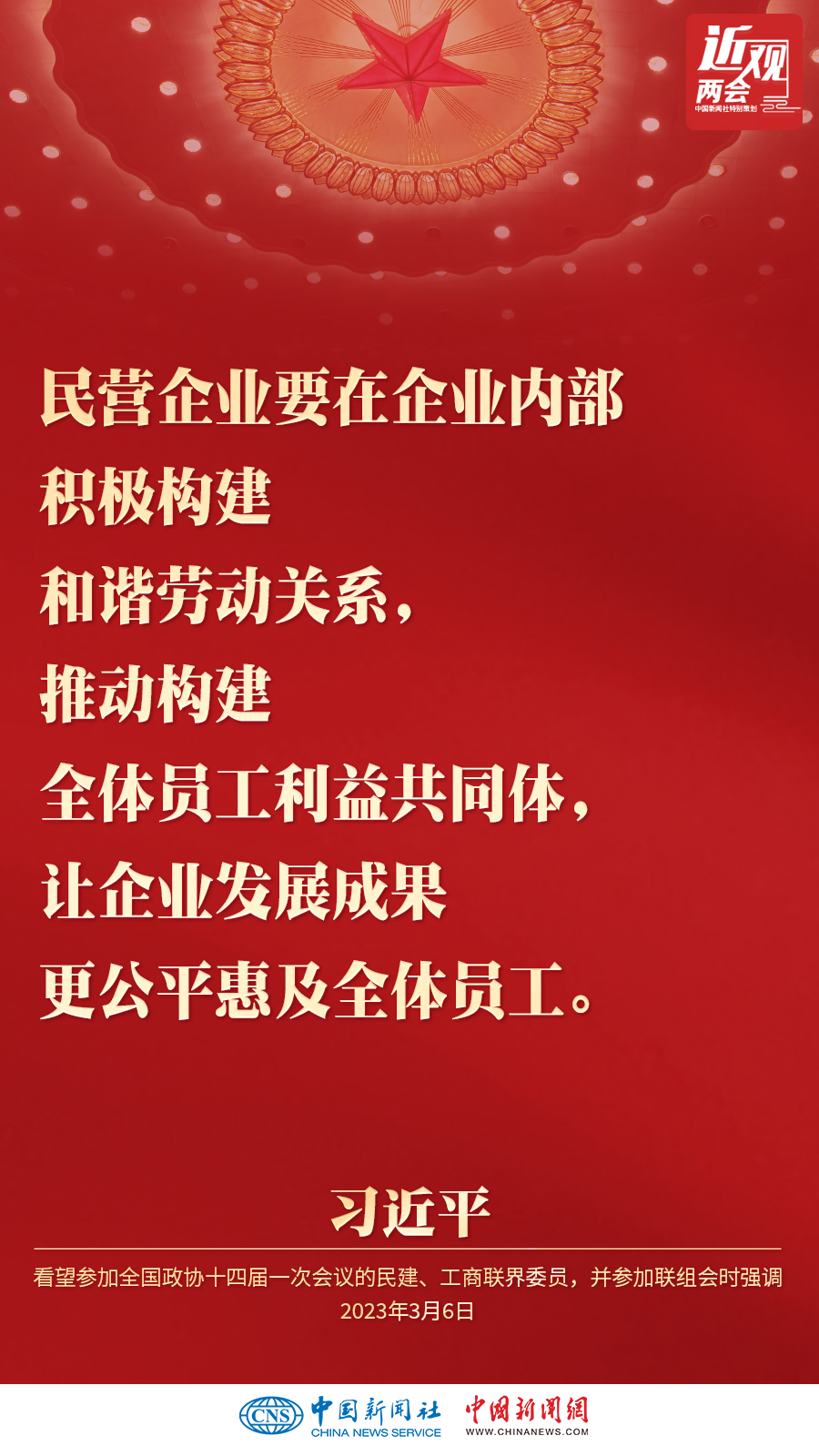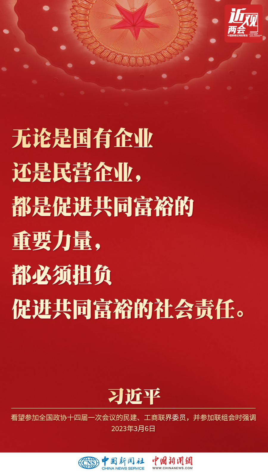 中共中央總書記、國家主席、中央軍委主席習近平3月6日下午看望了參加全國政協十四屆一次會議的民建、工商聯界委員,并參加聯組會,聽取意見和建議。他強調——