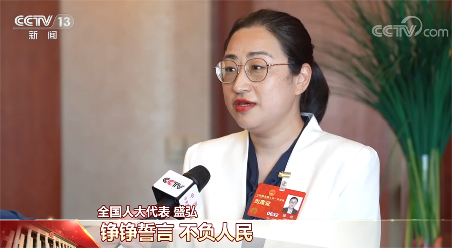 全國人大代表 盛弘:當現場宣布習近平當選為國家主席的時候,熱烈的掌聲久久不息,隨后進行了憲法宣誓,錚錚誓言,不負人民。這是黨心、民心所向,也表達了14億多人民對于總書記發自內心的擁戴。