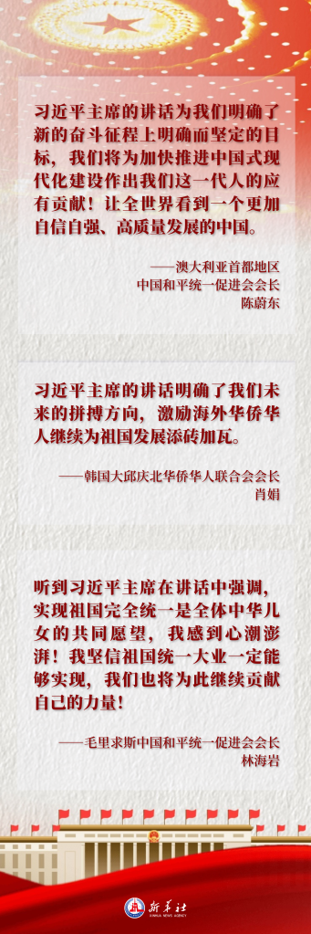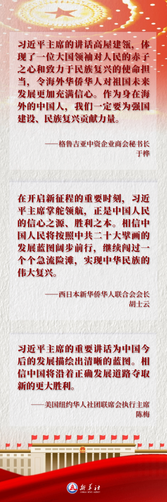 海外華僑華人表示,習近平主席的講話為在新征程上譜寫中國式現代化新篇章指明方向,激發全體中華兒女的積極性、主動性、創造性。