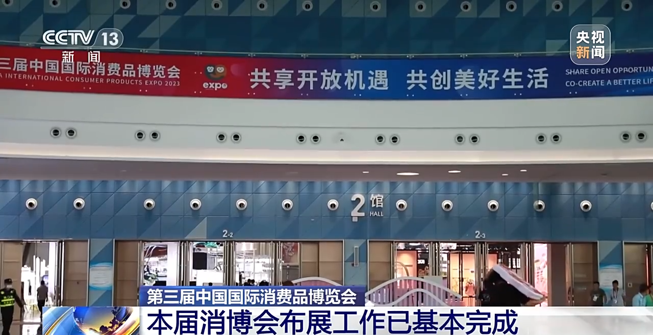 總臺央視記者 唐蕾:大到汽車,小到服裝等新品正陸續被擺上展臺?,F場的工作人員正在進行最后的優化點綴和現場調試設備,本屆消博會八個展館的布展工作已經基本完成。