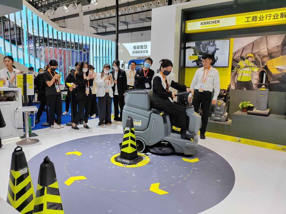 圖為德國卡赫展位工作人員在演示清潔設備。新華社記者夏天 攝