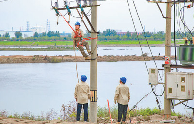 日前,國網北京石景山供電公司搶修人員在北京市房山區羊頭崗村搶修受損電力線路。 李 強攝