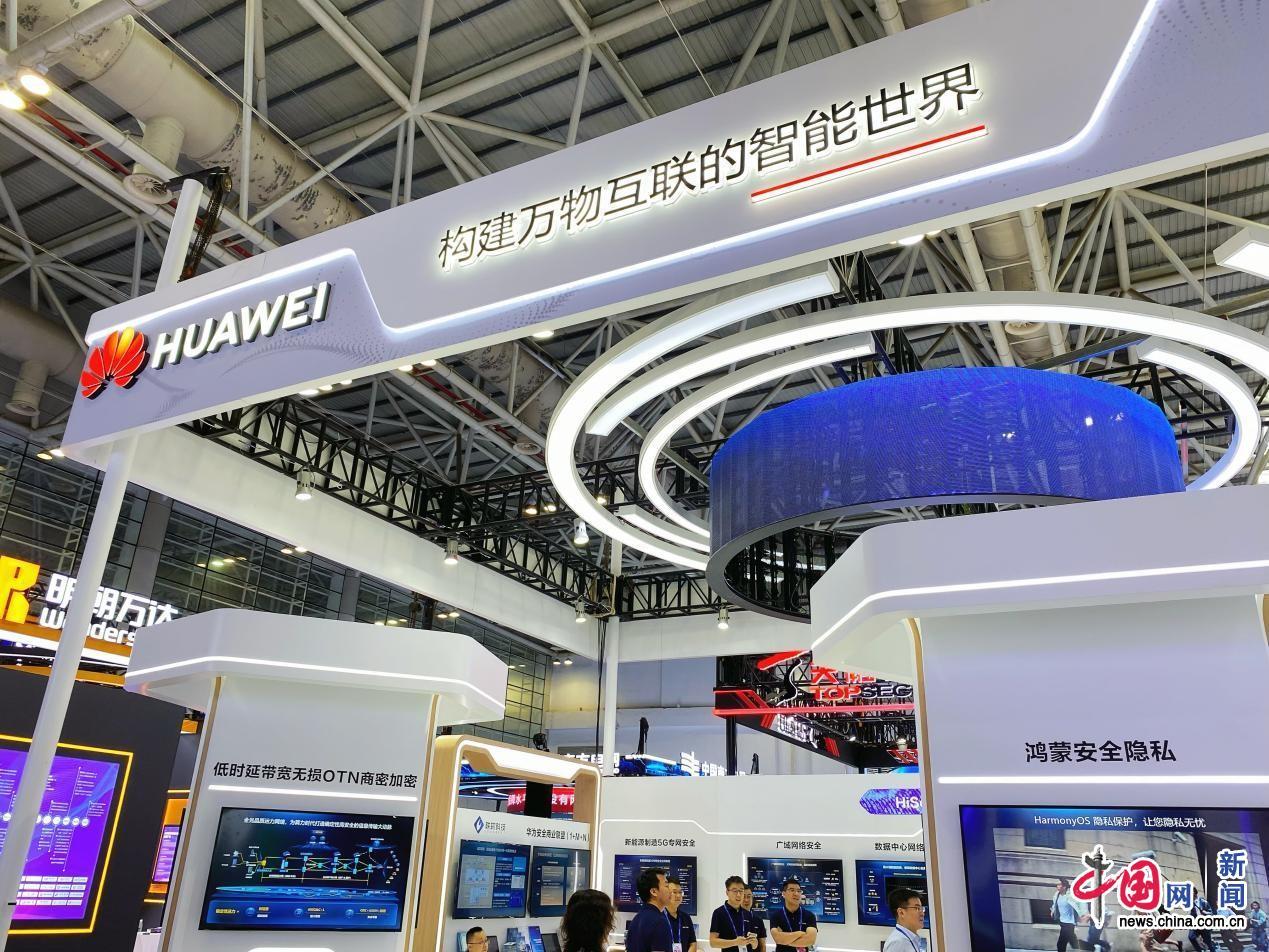 圖為華為展區,展示華為網絡安全、云安全、終端鴻蒙安全、光傳輸安全、存儲、鯤鵬計算等最新技術研發成果。此外,華為還將在本次博覽會上還將首次發布并展出華為乾坤EDR產品。中國網記者 趙超 攝