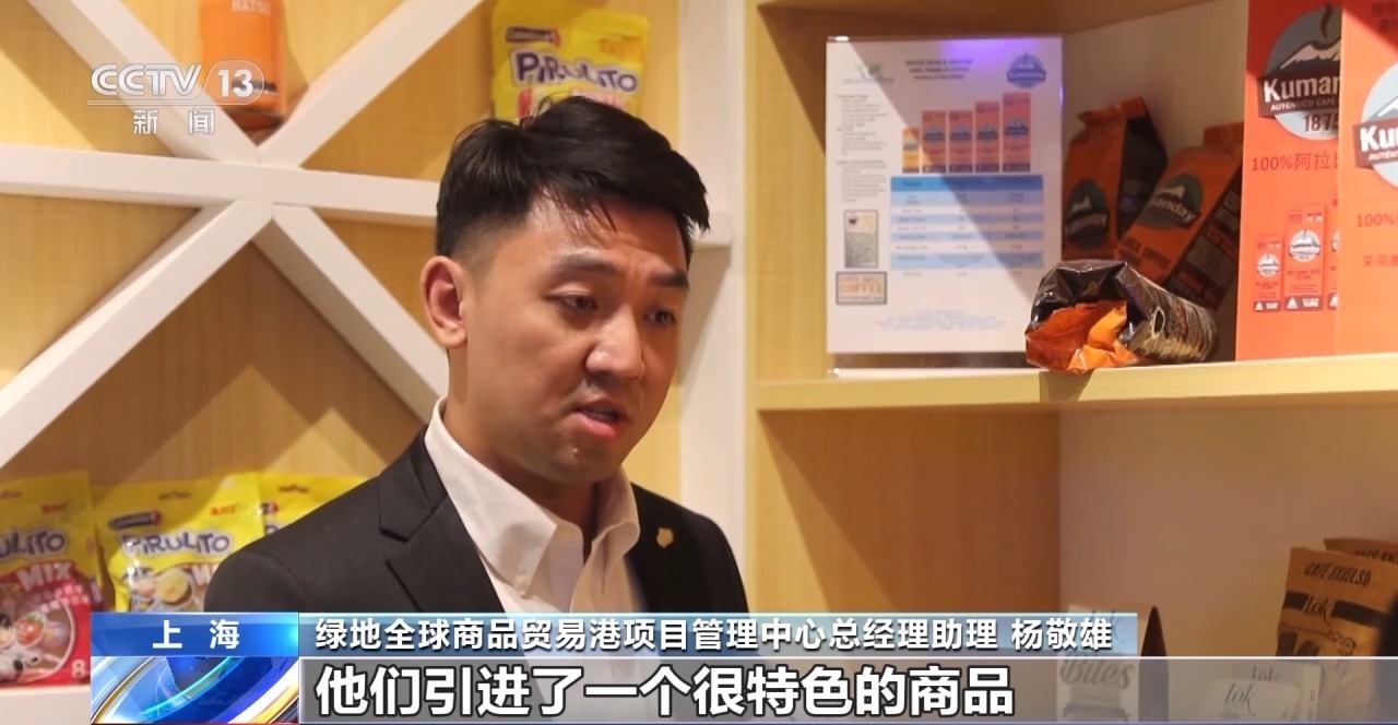 綠地全球商品貿易港項目管理中心總經理助理 楊敬雄:比如像哥倫比亞的進口館,從去年進博會開始,他們引進了一個很特色的商品,哥倫比亞的巧克力,它的包裝是完全用甘蔗的纖維來做的,可以達到百分之百可降解,這樣包裝的一些材料的運用是越來越貼近我們環保的理念,這樣一些內容,其實在各個館里面都有體現。