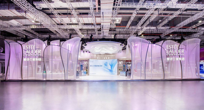圖為雅詩蘭黛集團第六屆進博會展館 中國國際進口博覽會現已成為中國分享發展機遇、加強同跨國公司合作的重要平臺。雅詩蘭黛集團此次的展館造型像盛開的花朵,寓意花開盛放,不僅令人眼前一亮,也借此慶祝雅詩蘭黛集團在中國的30年發展歷程。