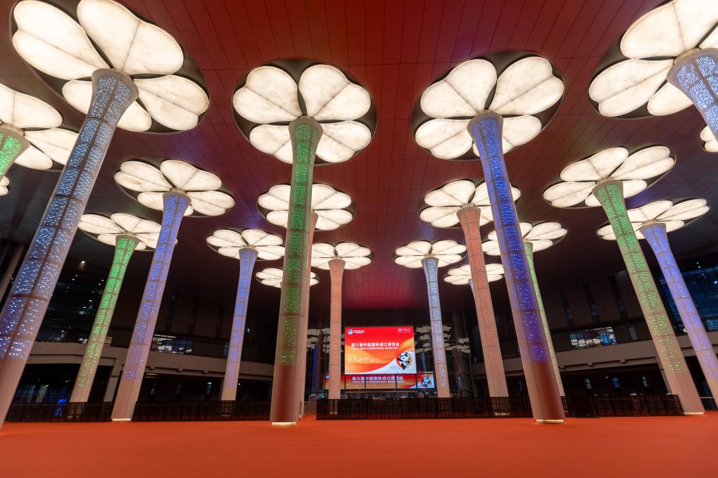 11月3日拍攝的國家會展中心(上海)。新華社記者王翔攝 拂面而來的,是更綠色、低碳的全球產業新趨勢。走進進博會現場,由生物聚乙烯材料制成的樂高生物基元件搭建的主題裝置奪人眼球,亞瑟士展示產品碳足跡標簽的使用創意別致,西門子覆蓋電池整個生命周期的全鏈條綠色低碳創新服務也吸引不少人駐足……各個展臺不約而同將低碳、綠色、可持續作為關鍵詞。 拂面而來的,是更多的“新面孔”“新朋友”?!袄吓笥选辈铰牟煌?,“頭回客”也紛至沓來。本屆進博會上,國家展有11個國家首次參展,34個國家首次線下參展。從最不發達國家到發達國家,從初創公司到世界500強……進博會的“新朋友”越來越多,“進博效應”輻射全球。