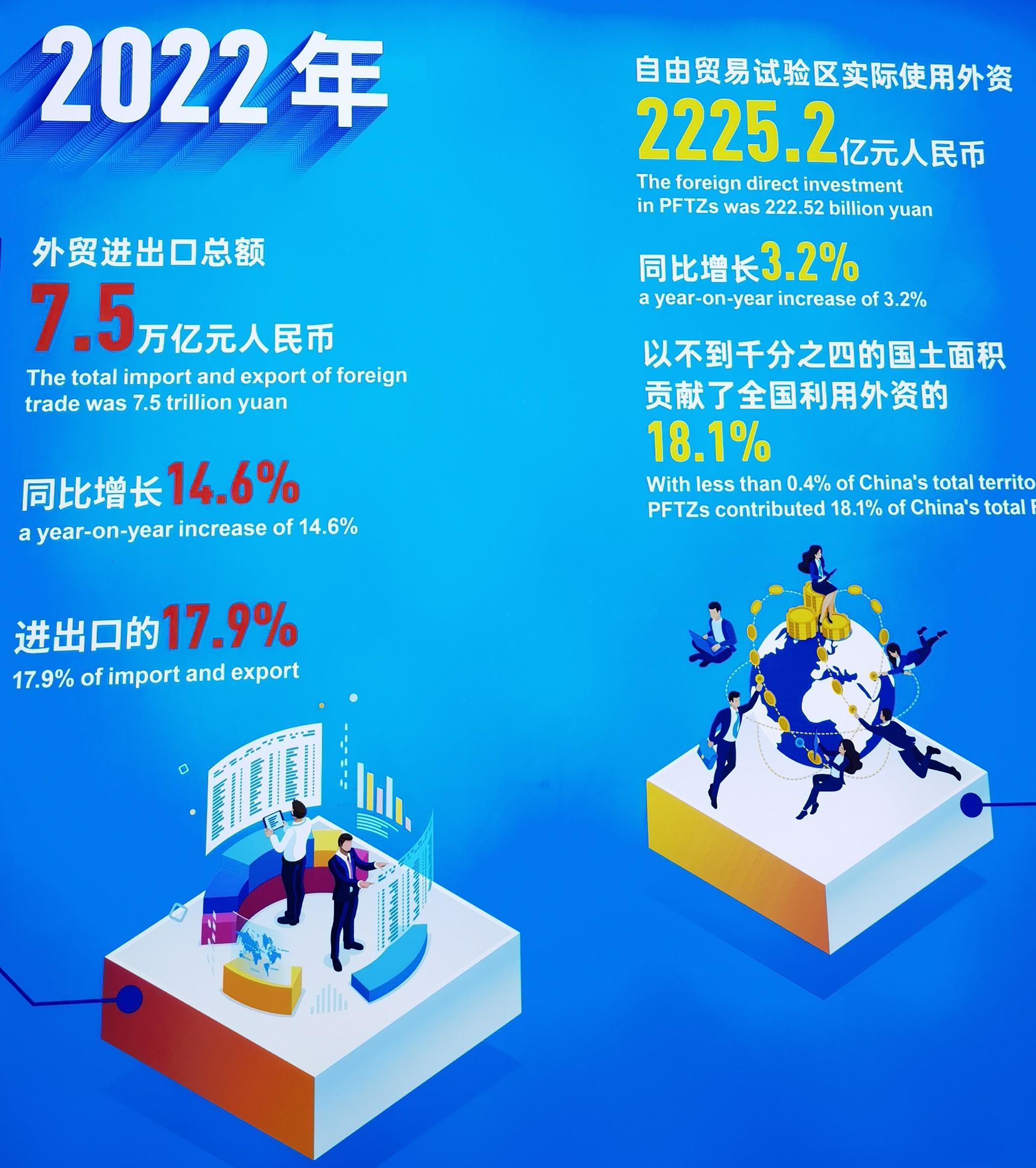 截至2022年 自貿試驗區以不到千分之四的國土面積 貢獻了占全國18.1%的外商投資 和17.9%的進出口貿易 并向全國復制推廣302項制度創新成果 形成了改革紅利共享 開放成果普惠的良好局面 |