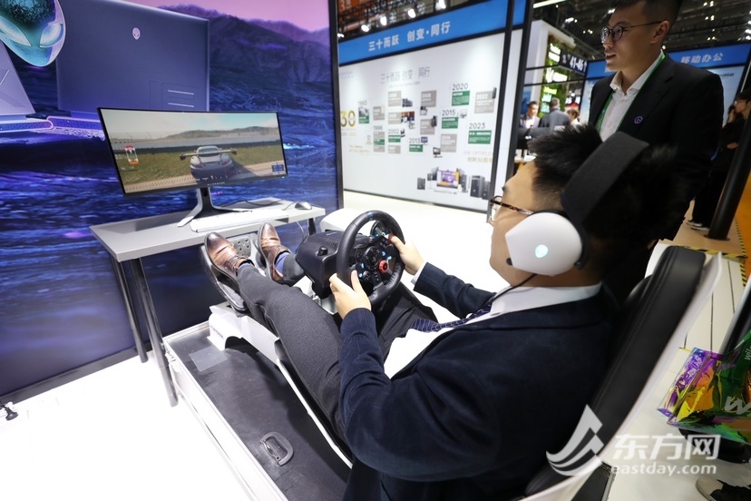 觀眾在戴爾展臺互動體驗。本屆進博會,戴爾帶來了集AI、5G、邊云協同架構、先進的基礎設施產品于一體的車聯網服務測試平臺,全方位展示了包括特定車輛識別和預警、行人行為分析和預警,以及右轉輔助駕駛在內的車聯網安全用例,助力提高道路安全性能和交通效率,加速智能交通落地。