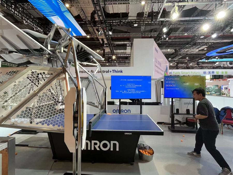 “四葉草”技術裝備館入口處,一臺體型巨大的乒乓球臺擺在參展商歐姆龍展臺顯著位置。球桌的一邊,是乒乓球世界冠軍陳玘,另一邊,“手持”球拍、球路詭異的“選手”是乒乓球教練機器人FORPHEUS。今年,歐姆龍發布第八代乒乓球教練機器人。在進博會期間,歐姆龍約來世界冠軍,與這個“教練”一較高下。 不少進博“熟客”卻覺得此情此景有些眼熟:這件展品,是不是去年也曾出現過?確實如此。歷年進博會,歐姆龍不曾錯過,而乒乓球教練機器人總是在歐姆龍展臺C位。不僅如此,米其林展臺也將過去展出的“綠色輪胎”全部集齊,歷年展品可持續材料含量一年比一年升高,首發首秀值得期待,進博會上的老展品,也在歷久彌新。 機器人越來越“懂你” 今年,歐姆龍在進博會上展出的是其第八代的乒乓球教練機器人。相較于以往版本,第八代機器人能夠與人相互理解,通過“察言觀色”實現與乒乓球訓練者的共同成長。 “你聽,選手正在不斷和‘教練’對話?!睔W姆龍機器人技術研發中心工程師劉曉俊博士對記者說,最新發布的第八代乒乓球教練機器人增加人機“對話”功能,可以使機器人與人之間建立更深入的交互關系。 人與機器可以通過說話,了解彼此的訓練想法,規劃后續的對打訓練方案,使訓練過程變得更加高效?!拔蚁胗糜沂志毩?、我想打慢一點……你有任何要求都可以在對練中直接提出?!眲钥≌f。