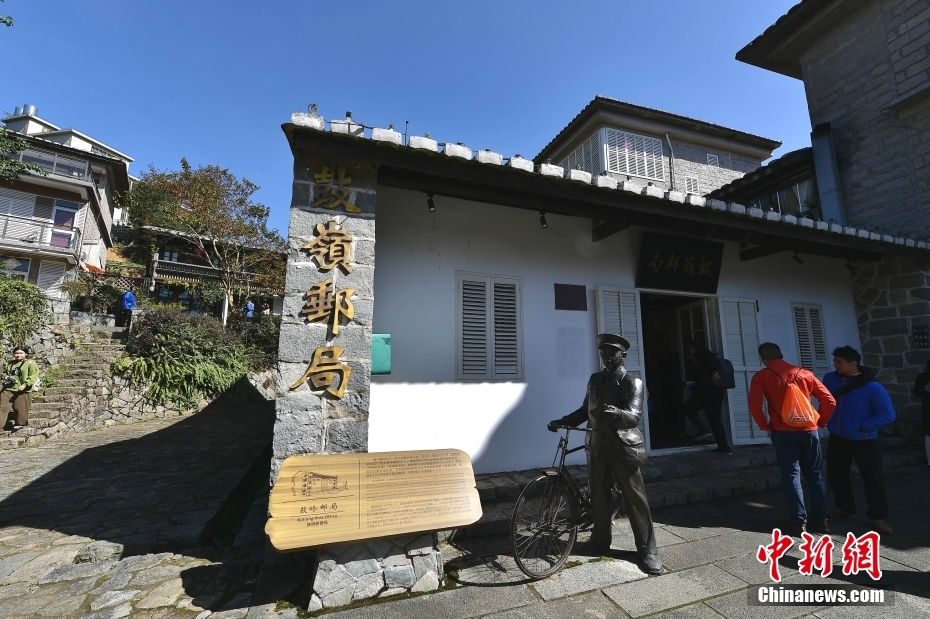 11月18日,游客在鼓嶺郵局參觀。如今,在古井飲水、在柳杉王下合影、去鼓嶺郵局寄明信片,成了中外游客鼓嶺行的必選項。