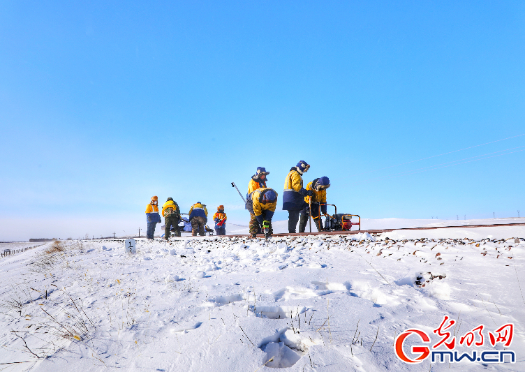 光明網訊(記者 陶媛 攝影 李季春 張雪)2月5日,內蒙古通遼的最低氣溫達到零下28℃。中國鐵路沈陽局集團有限公司通遼工務段賀斯格烏拉線路車間的工人們戴上厚厚的棉帽、手套、脖套等防寒裝備,肩扛手拎著工具、機具,裝上工程車,開始了一天的鐵路線路養護維修工作。
