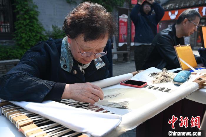 圖為國家級非物質文化遺產代表性項目蘇繡(揚州刺繡)代表性傳承人吳曉平在揚州東關歷史文化街區展示技藝。張蔚然 攝