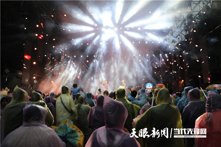 現場,助陣嘉賓陳樂基、童予碩、黃鶴分別演唱的《月半小夜曲》《海闊天空》《裹著心的光》《敕勒歌》等10多首流行音樂引得全場跟唱,盡管天空下著大雨,但現場熱浪依然不減。
