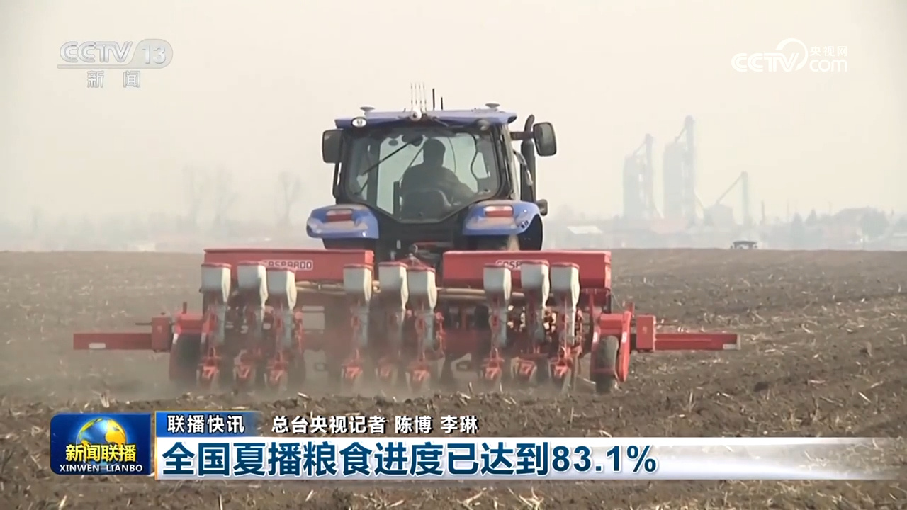 央視網消息:7月6日的《新聞聯播》報道了我國多領域建設進展順利,高質量發展穩步推進。 全國夏播糧食進度已達到83.1%