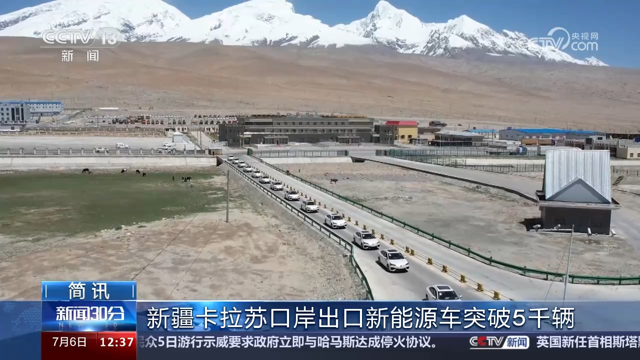 7月5日,雄商高鐵全線控制性工程——雄商高鐵黃河特大橋順利合龍,大橋在山東梁山與河南臺前之間跨越黃河,全長1600米。雄商高鐵北起雄安,南至商丘,線路全長約552公里。 新疆卡拉蘇口岸出口新能源車突破5000輛