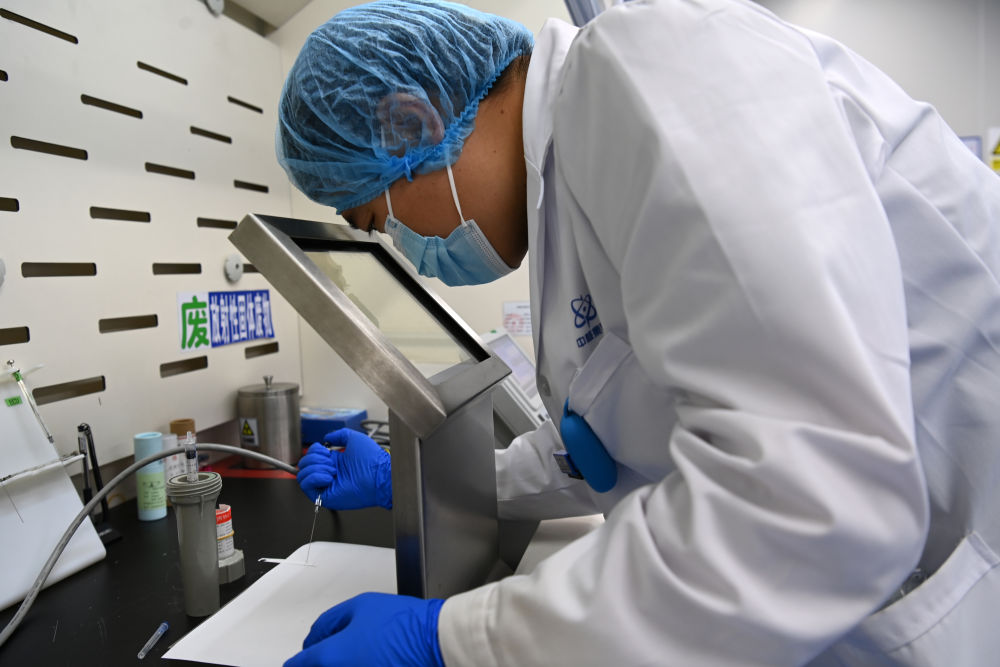 7月25日,在位于蘭州新區的蘭州原子高科醫藥有限公司,工作人員進行藥品放行檢驗。新華社記者 范培珅 攝