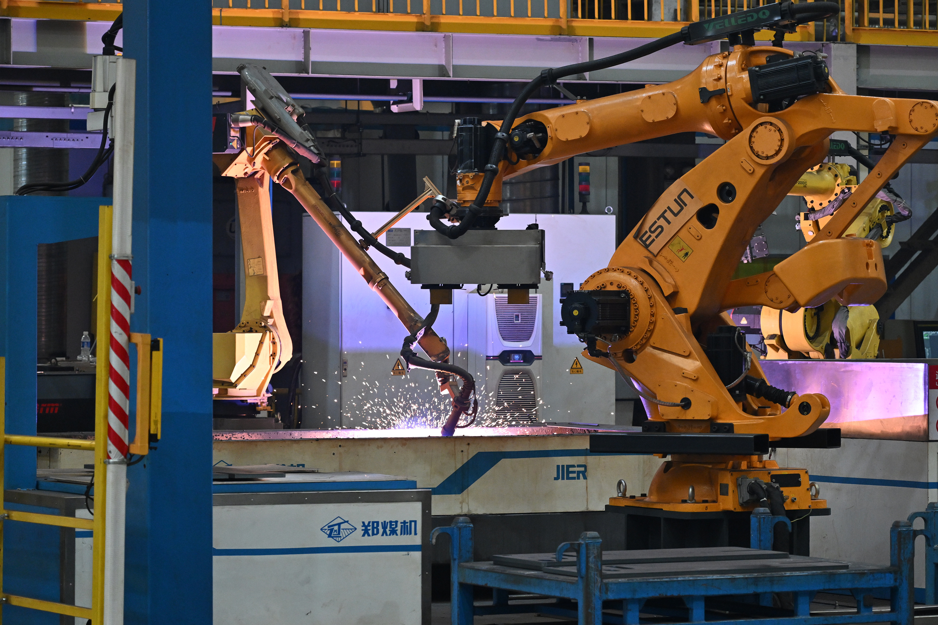 貨車司機把板材運至工廠后,機器人自動從貨車上拾取板材,并按厚度、材質等分別堆放至智能倉儲區;依托5G通信系統和物聯網系統,工廠的激光切割生產線、智能焊接生產線,均由機器人完成。