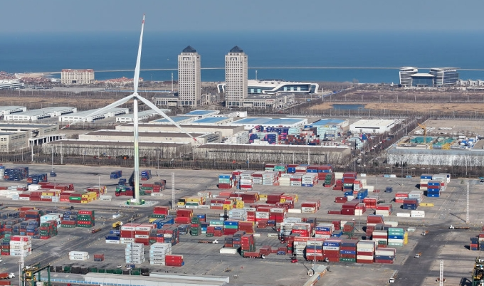 訪客進入中國北方最大港口城市天津的濱海新區,會為高速路上源源不斷的重型卡車和港口堆積如山的集裝箱感到吃驚。