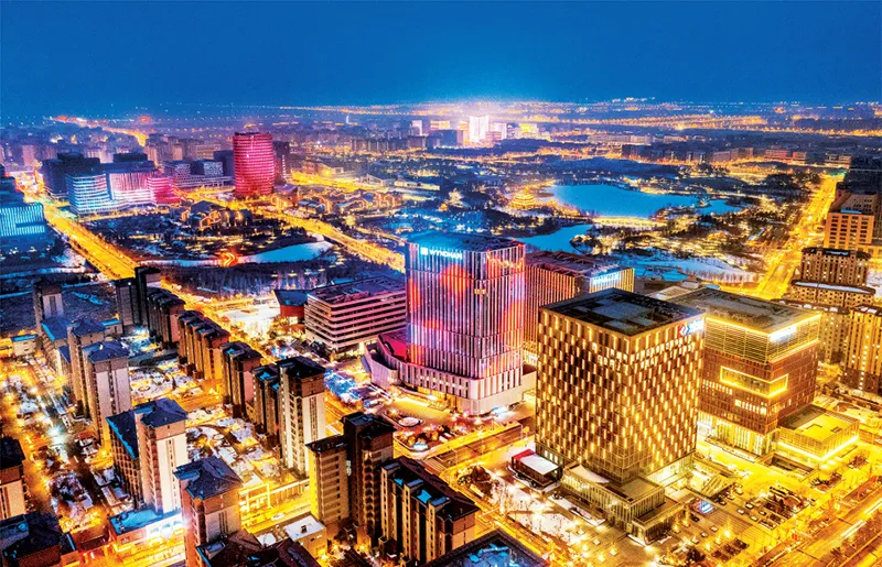設立雄安新區,是以習近平同志為核心的黨中央高舉新時代改革開放旗幟作出的重大戰略舉措。圖為2024年2月7日雄安新區容東片區夜晚景象。雄安新區宣傳網信局供圖 李達/攝