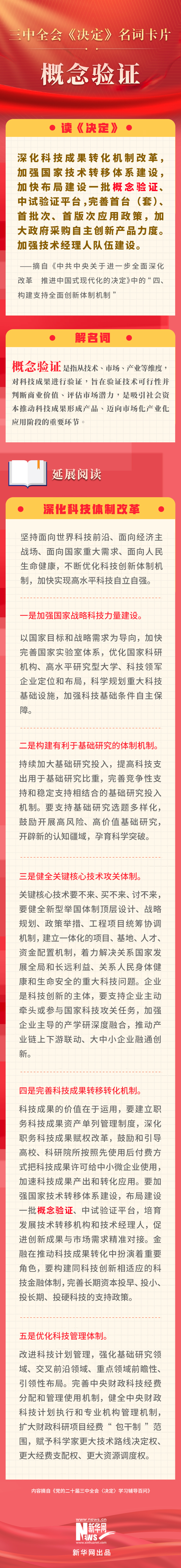 黨的二十屆三中全會審議通過了《中共中央關于進一步全面深化改革、推進中國式現代化的決定》。新華網依據《黨的二十屆三中全會〈決定〉學習輔導百問》,制作三中全會《決定》系列名詞卡片,和大家一起來深入學習領會二十屆三中全會精神。本期名詞是“概念驗證”。