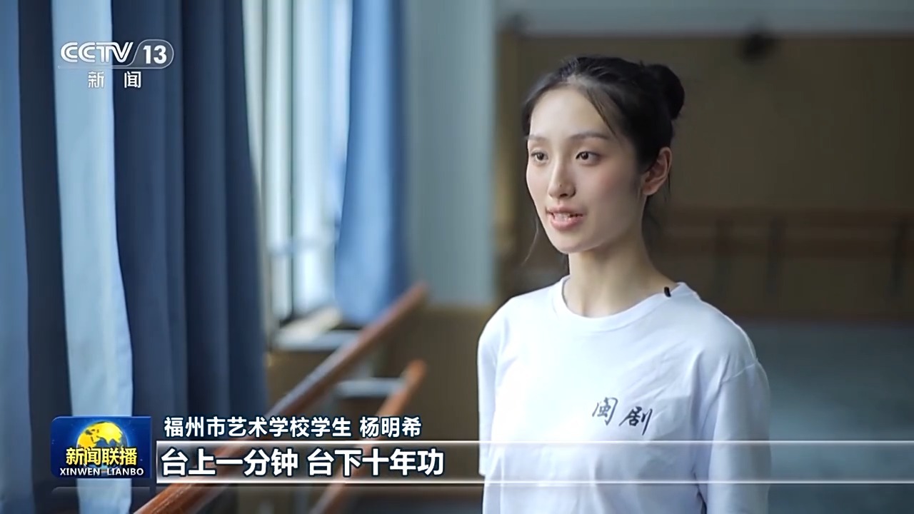 福州市藝術學校學生 楊明希:勤學苦練,振興閩劇,這八個字時刻提醒我們臺上一分鐘,臺下十年功。我們要學好文化,又要學好專業,學閩劇一定要吃苦才能把基本功打實。