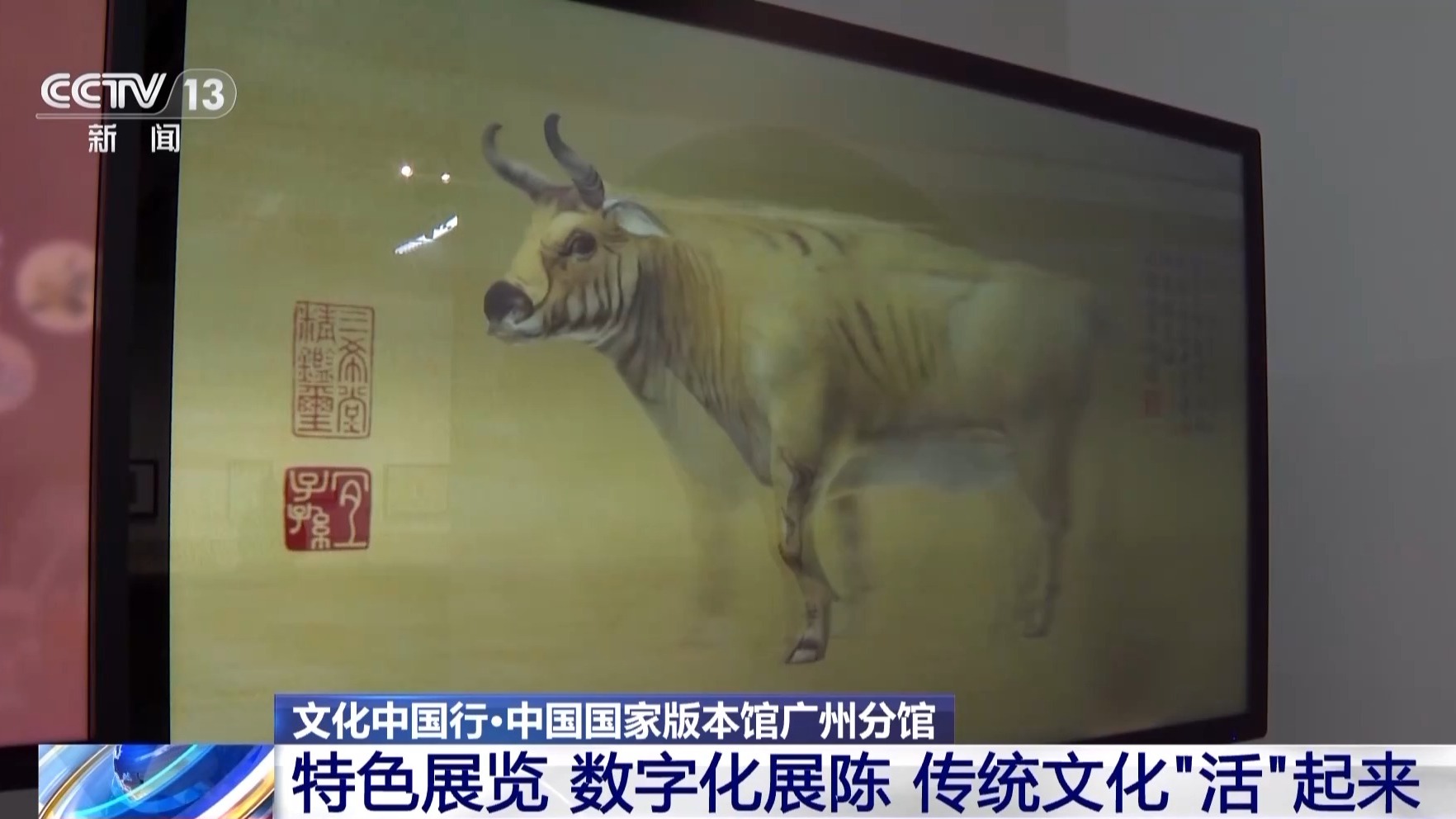中國國家版本館廣州分館引入科技手段創新展示形式,將文化遺產保護傳承融入展示陳列全過程。在唐代名畫《五牛圖》前,觀眾不需要佩戴任何設備,就可以獲得大視角、高縱深、舒適自然的觀展效果,生動立體,栩栩如生。