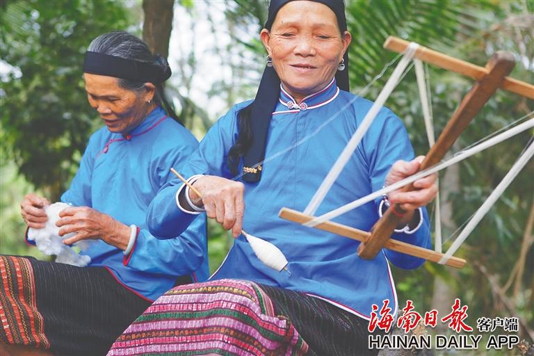 海南黎族婦女紡線。海南日報全媒體記者 張杰 攝