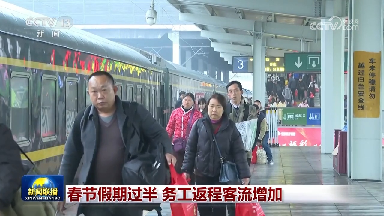春節假期過半,務工客流增長明顯。四川達州、河南南陽、湖北棗陽等務工客流集中地陸續開行務工專列。全國鐵路2月1日預計發送旅客1330萬人次,加開旅客列車791列。