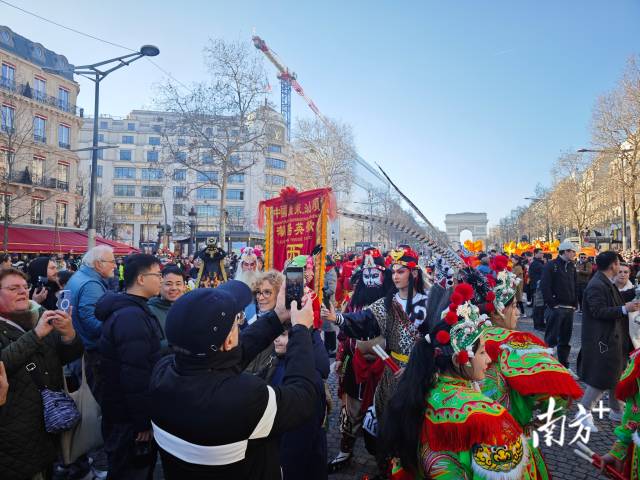 當地時間大年初五(2月2日)下午,被譽為“世界三大繁華中心大街”之一的巴黎香榭麗舍大街鑼鼓喧天,掌聲雷動,處處洋溢著熱鬧而喜慶的新春氣氛。