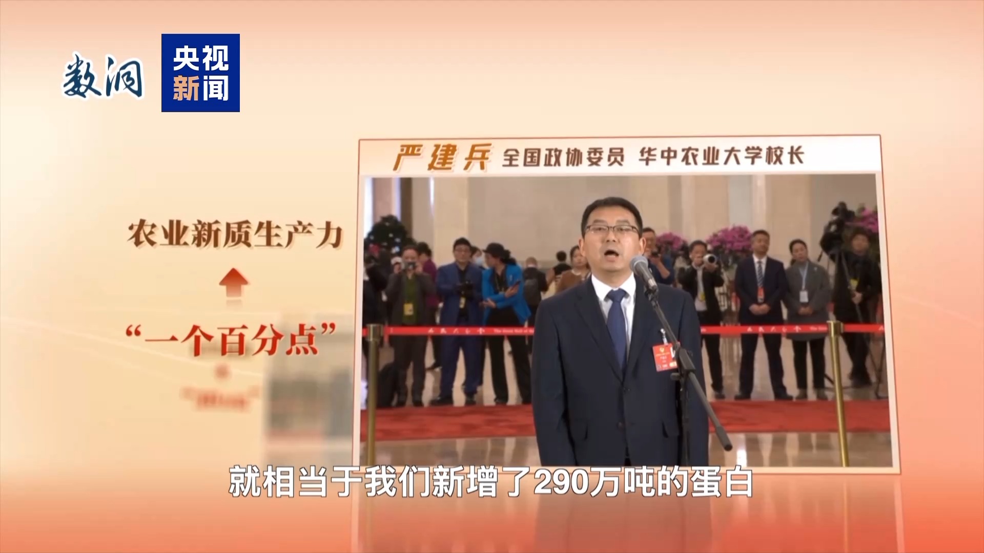 全國政協委員 華中農業大學校長 嚴建兵:玉米蛋白含量每提高一個百分點,就相當于我們新增了290萬噸的蛋白。