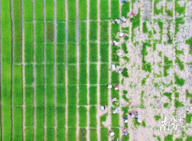 陽江市農科所在白沙試驗場進行省水稻區域試驗早造插秧工作。南方+拍客 關巧明 攝