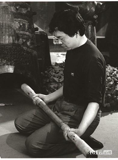 (1978年曾侯乙編鐘出土后的演奏彩排。穿黑色衣服的是當時中國音樂研究所所長黃翔鵬,右邊持棒敲鐘者為時任湖北省博物館副館長馮光生。資料照片) 曾侯乙編鐘自出土到今天,一共只公開奏響過3次原件。第一次是1978年,在曾侯乙編鐘出土3個月后的一場演奏會上,由馮光生奏響;第二次是為慶祝新中國成立35周年,編鐘原件在北京中南海懷仁堂奏響;第三次則是在香港回歸之際,作曲家譚盾為交響樂《1997:天·地·人》破例使用編鐘原件采音錄制,武漢音樂學院教授譚軍就是演奏者之一。 譚軍:印象特別深刻。我們排練節目一直用的就是曾侯乙編鐘的復制件。那是1997年6月3日這一天。我們在練習的過程中,突然被告知,晚上會用原件來錄制,心態瞬間就不一樣了。 當我真正看到那件“神器”的時候,就覺得眼前一亮,光是它本身的鑄造就讓人感到非常震撼,上面的云紋圖細得像頭發絲,是可以拿放大鏡看的,真的會有種全身“炸汗毛”的感覺。 當這樣一個世界級的寶在我手上時,我還真的不太敢去觸摸它,不敢用特別大的力度去演奏。當時譚盾老師就跟我們說,用我們自己內在的這種對先祖的敬畏之情去演奏就達到目的了。