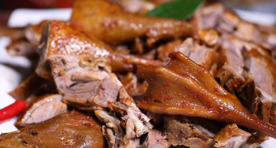 武夷山山高水冷 千百年來 當地人形成好辣喜辛的飲食習慣 熏鵝主打一個“辣”字 辣味持久不退 口齒回甘 一口鵝肉,一口黃酒 “吃鵝喝酒,賽過神仙”
