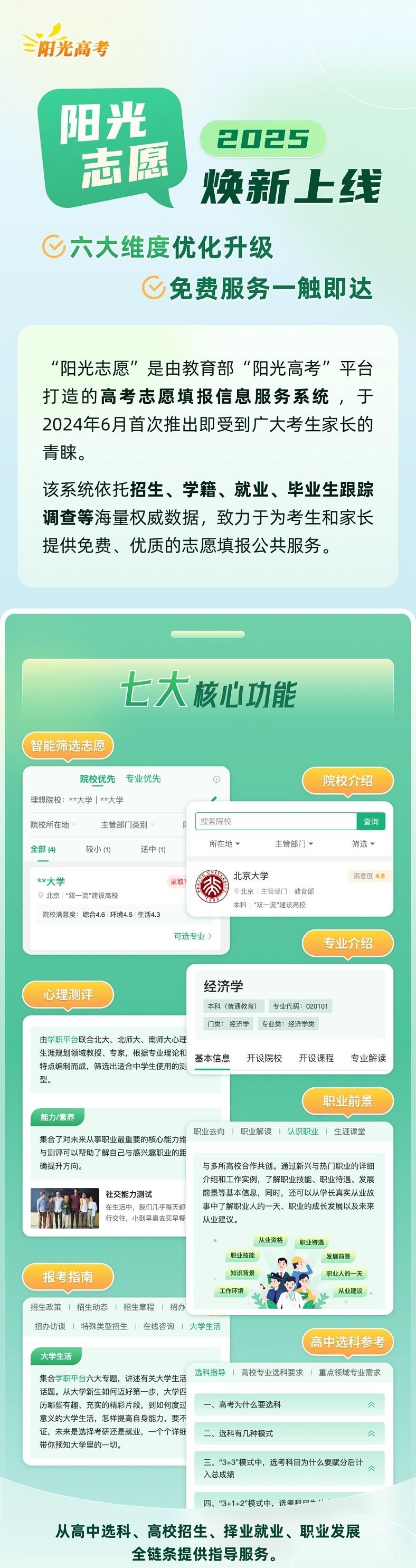 2025年,“陽光志愿”實現6大維度優化升級,更好服務考生家長科學決策。