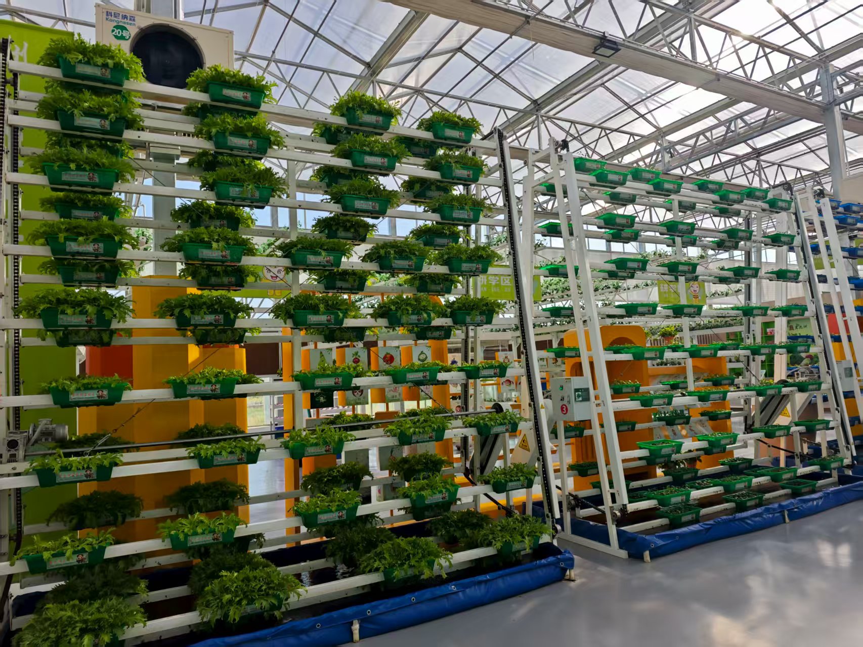 “我們全面推廣設施大棚環境數據采集管控、智能化機械應用、電動外遮陽等系統?!奔街輩^農投公司總經理陳春成介紹,基地內的物聯網智能遠程控制柜能根據環境和蔬菜長勢,自動補光、通風、換氣。