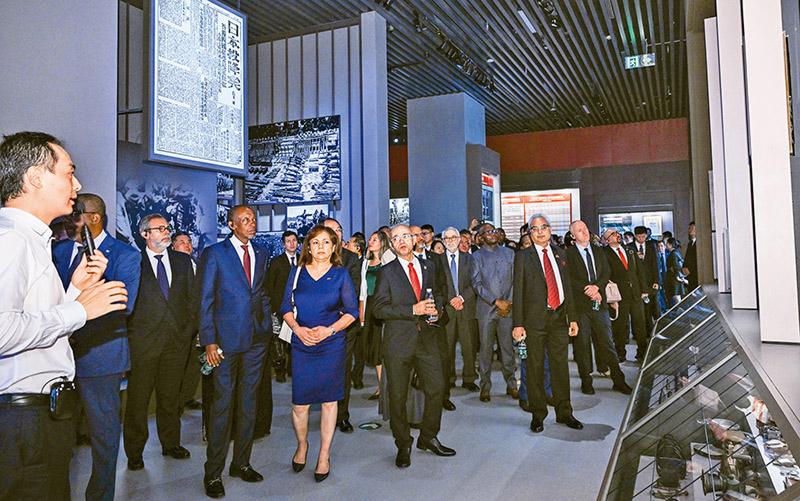 2025年7月17日,來自112個駐華使館和10個國際組織的160多位駐華使節和外交官到中國人民抗日戰爭紀念館參觀《為了民族解放與世界和平》主題展覽。 新華社記者 陳曄華/攝