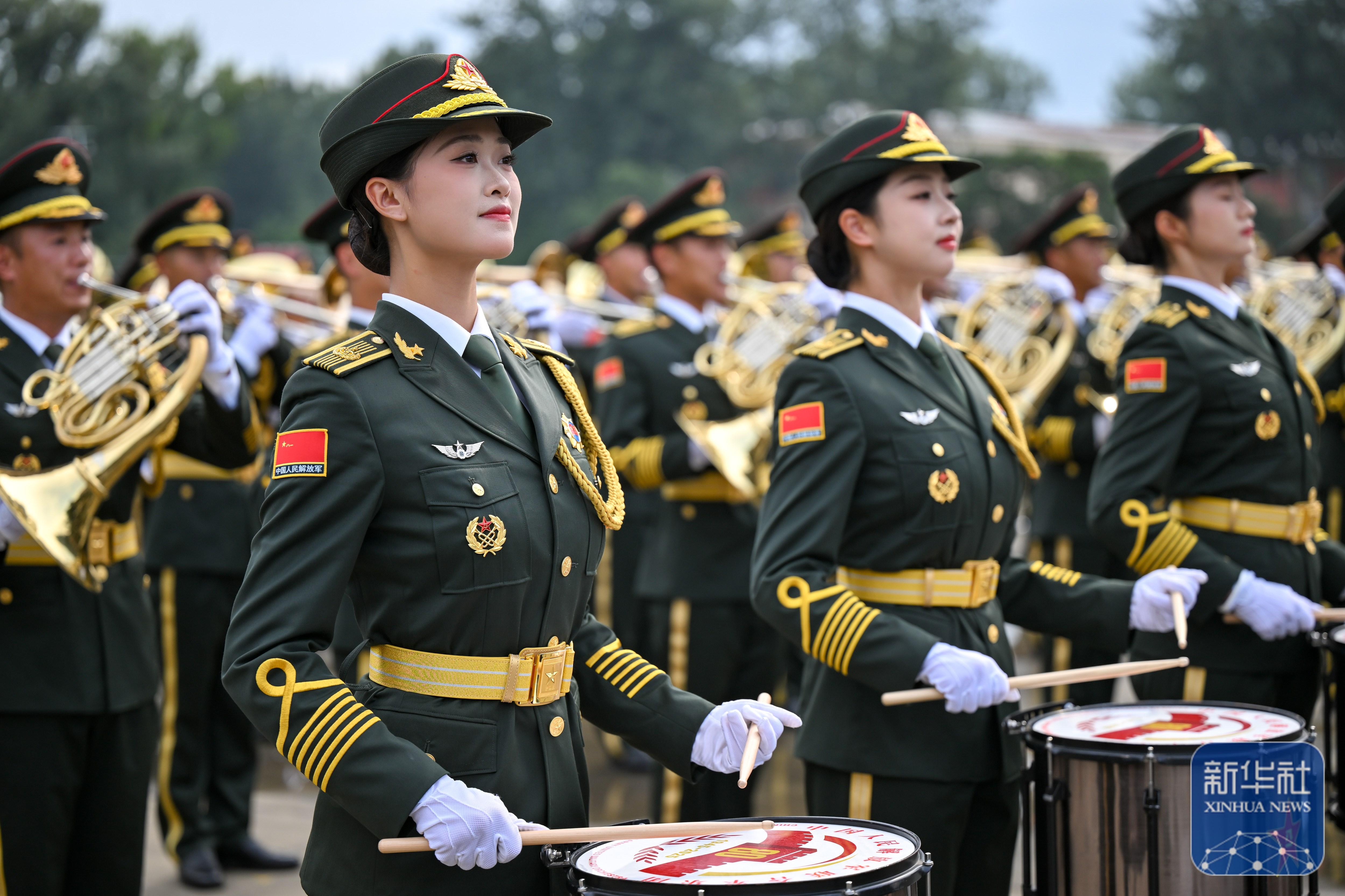 ↑ 中國人民解放軍聯合軍樂團在進行訓練(8月12日攝)。新華社記者 殷剛 攝
