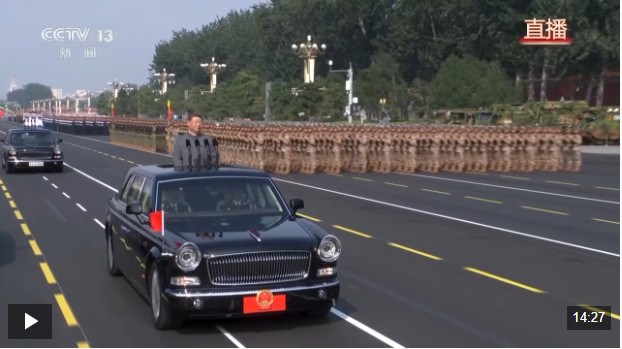 在雄壯的軍樂聲中,習近平乘車沿著寬闊的長安街,依次檢閱徒步方隊和裝備方隊。