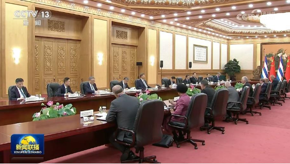 習近平強調,中古雙方要堅持命運與共,深化高水平政治互信,進一步密切高層交往,加強治黨治國經驗交流,堅定相互支持,持續加深肝膽相照的特殊情誼;要堅持真誠互助,系統推進發展合作,中方愿繼續在力所能及范圍內為古方提供幫助和支持;要堅持勠力同心,加強全方位戰略協作,繼續在七十七國集團、金磚國家等框架內協調和配合,落實好全球發展倡議、全球安全倡議、全球文明倡議、全球治理倡議,共同建設好國際調解院,為促進世界和平與發展作出更大貢獻。中方將繼續堅定支持古方反對干涉和封鎖的正義斗爭。