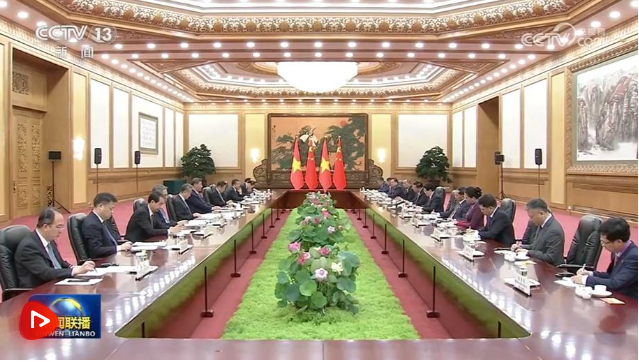 習近平強調,中方支持越南走好符合本國國情的社會主義道路,開好越共十四大。雙方要本著同志加兄弟的精神,深化治黨治國經驗交流,辦好建交75周年暨"中越人文交流年"系列活動,給兩國人民帶來切實利益。面對單邊主義、叢林法則逆流,越來越多的國家認識到,妥協退讓沒有出路,聯合自強才有希望。我提出全球治理倡議,就是要推動全球治理體系朝著更加公正合理的方向發展。中方愿同越方一道,維護全球南方共同利益,為世界提供更多正能量。
