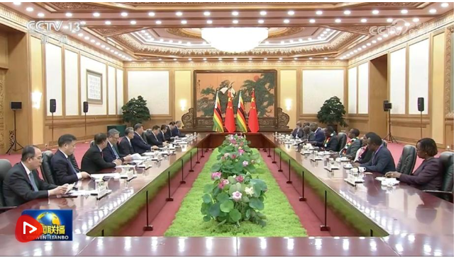 9月4日上午,國家主席習近平在北京人民大會堂會見來華出席紀念中國人民抗日戰爭暨世界反法西斯戰爭勝利80周年活動的津巴布韋總統姆南加古瓦。兩國元首宣布將雙邊關系提升為中津全天候命運共同體。
