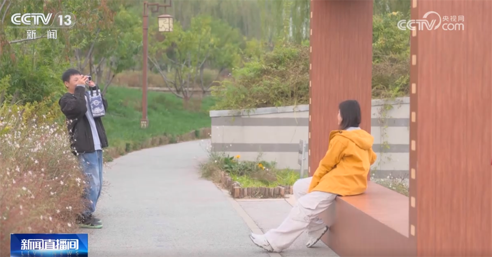 “秋日長椅三分鐘計劃”創新推出了三大電影畫框場景。朝陽公園的饅頭柳以其獨特的“西蘭花”樹形,成為市民“出片兒”的熱門機位。在地壇公園,畫框將古柏與銀杏林定格,皇家園林的秋日氣韻引來游客駐足。
