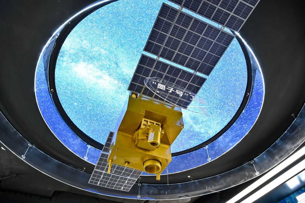 在位于安徽省合肥市的中電信量子信息科技集團有限公司科技體驗館內拍攝的“墨子號”量子衛星模型(2025年7月1日攝)。新華社記者 張鋮 攝