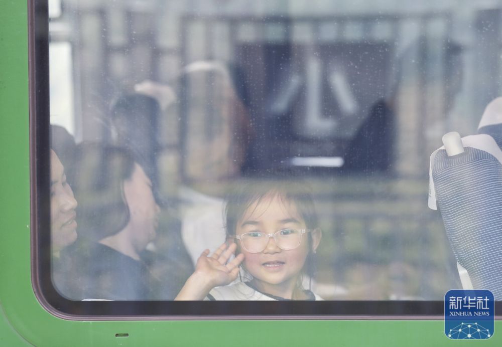 ↑ 10月31日,一名小女孩在小灣東站乘車。