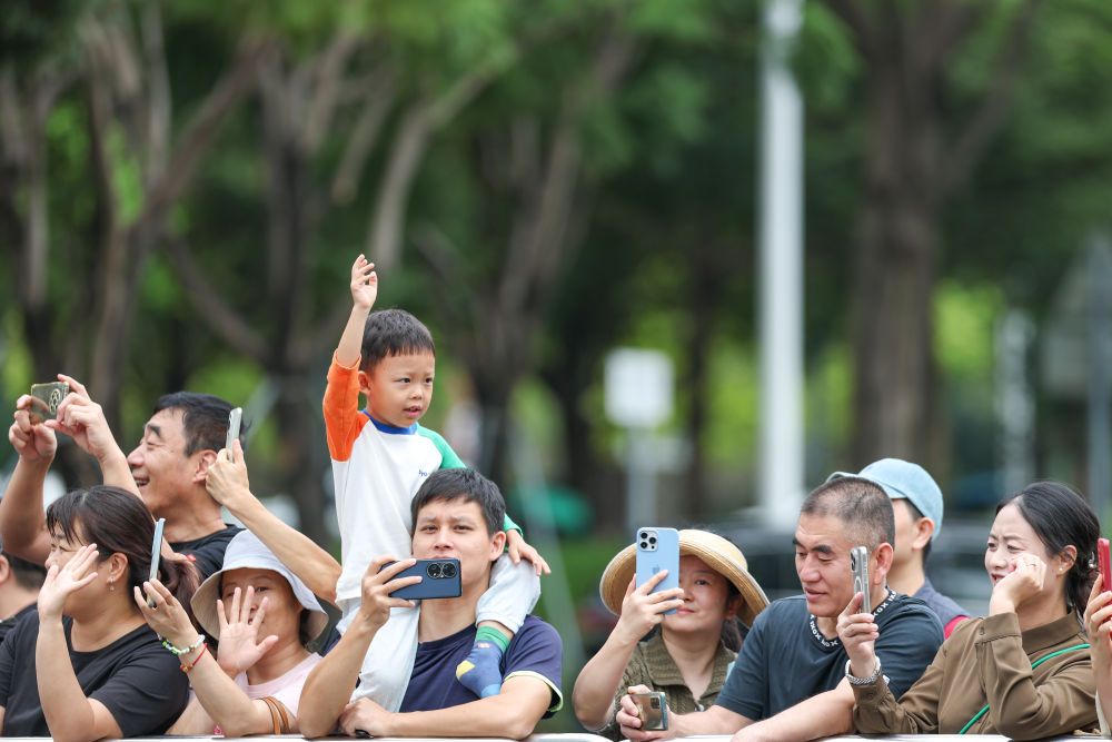 ↑ 觀眾在觀看火炬傳遞活動。新華社記者 黃偉 攝