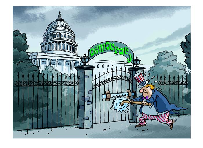 美國兩黨沉迷黨爭,無意解決民生困境。美國聯邦政府頻繁“停擺”,不僅暴露了其兩黨為服務自身政治目的的私心,更暴露了美式民主的制度缺陷和治理失能。