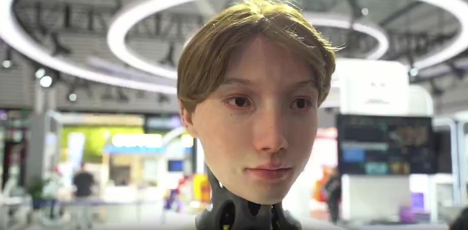 在AI北京展區,這款仿生機器人搭載AI高性能處理器,采用自主研發的仿生皮膚和高精密執行器,可實時識別模仿憤怒、微笑、厭惡、吃驚等復雜表情。