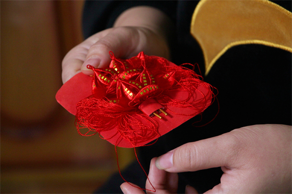 小小的花蘊含著許多吉祥寓意。 東南網記者 鄒玒攝 一根細細的鐵絲在手中彎彎繞繞,盤出形狀;拈著紅線的手指“變”成針。以鐵絲為定點,將線密密地“縫”在剪成花瓣狀的硬紙板上,插上竹簽,一朵在閩南頗受歡迎的春仔花就誕生了。 春仔花習俗是廈門市非物質文化遺產,在洪厝,姑娘們編春仔花的手藝,代代相傳。據考明嘉靖年間,洪厝村在京任刑部右侍郎的洪朝選回故里祭祖,發現凡祭品上都插著春仔花,村里的婦孺也插有春仔花,賞心悅目,他便讓家眷與侍女們學著扎制。也就是說,春仔花在洪厝至少有五百年以上的歷史。 或許是手指纏繞鐵絲、絲線的手法變化神奇,或許是春仔花習俗給人以欣欣向榮的意味,洪厝的姑娘們做春仔花的手藝就這樣傳了出去。有嫁出去的女兒,就有春仔花的“開枝散葉”;嫁到村里的媳婦,在耳濡目染下,也開始喜歡這紅彤彤的“傳家寶”,學成后教給娘家的姐妹們。 經過幾百年的傳承和發展,春仔花如今形成了婆婆花、新娘花、普通花、孩童花以及喪事花等十來個品種。在村子里,評比誰家的花做得好,就像一場人們口中的“選秀”,不僅每家每戶的巧婦人會溝通交流,更有不少閩南及臺灣地區的人前來學習、訂貨,在交流中博采眾長,將當下流行的文創理念融匯其中。春仔花像一顆種子,在共同的習俗中花開兩岸,傳承至今。 |