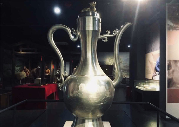 馬恩明父子合制155厘米高的“冠豸山壺王”。 受訪者供圖 四堡錫器制作技藝有700多年的歷史,傳承至今已有26代。明朝萬歷年間,四堡人吳一龍因制作的錫器堅固耐用,美觀大方,被皇帝所賞識,贊譽為“錫狀元”,四堡遂成為福建有名的錫器之鄉。 四堡錫器制作流程包括溶解與壓片,裁料、制胚、倒模與焊接,打磨與拋光,雕花、刻字與裝飾。相關器具有:錫原料、烙鐵、松香、銼子、焊錫、石制模具、名為“錫旋”的特制刀具等。 2009年,四堡錫器制作技藝被列入福建省第三批省級非物質文化遺產名錄。2014年,連城縣四堡鄉人馬恩明被評為省級非遺代表性傳承人。 近年來,馬恩明父子二人攜手,一邊傳承,一邊創新,讓老技藝煥發新光彩。與此同時,政府部門也行動起來,把四堡錫器制作技藝納入古鎮文化建設,幫助錫器制作技藝“走出去”。 |